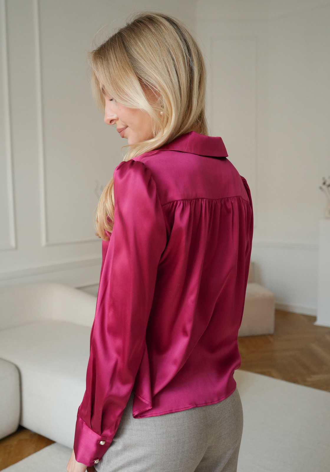 - Elegancka koszula damska z jedwabiu. Naturalny jedwab, idealnie układający się na sylwetce gwarantuje komfort i luksusowy wygląd do pracy i na specjalne okazje.